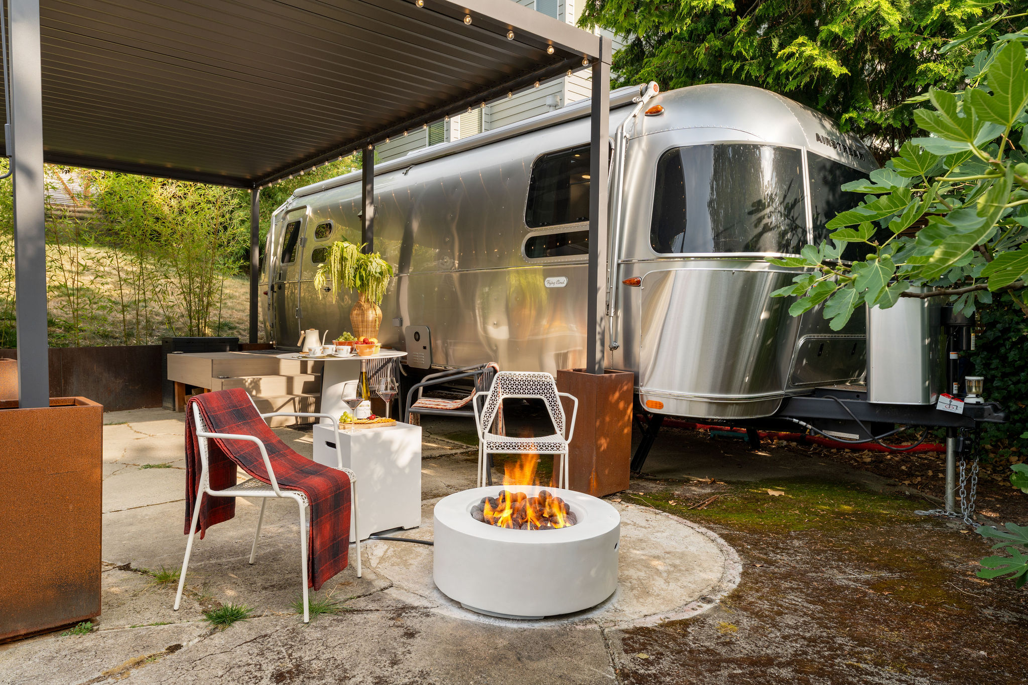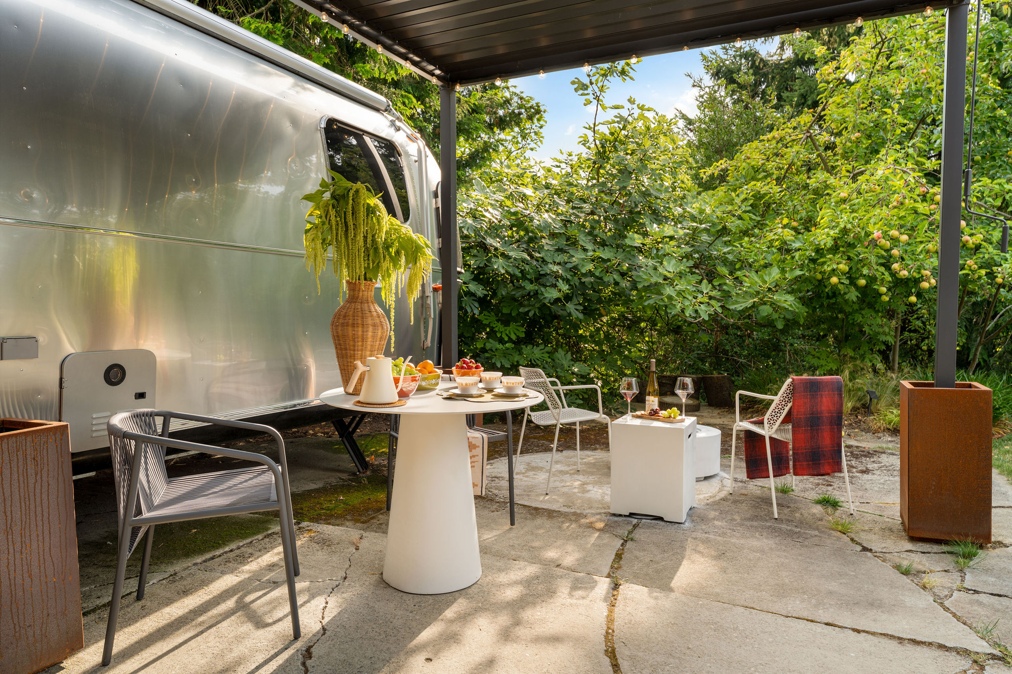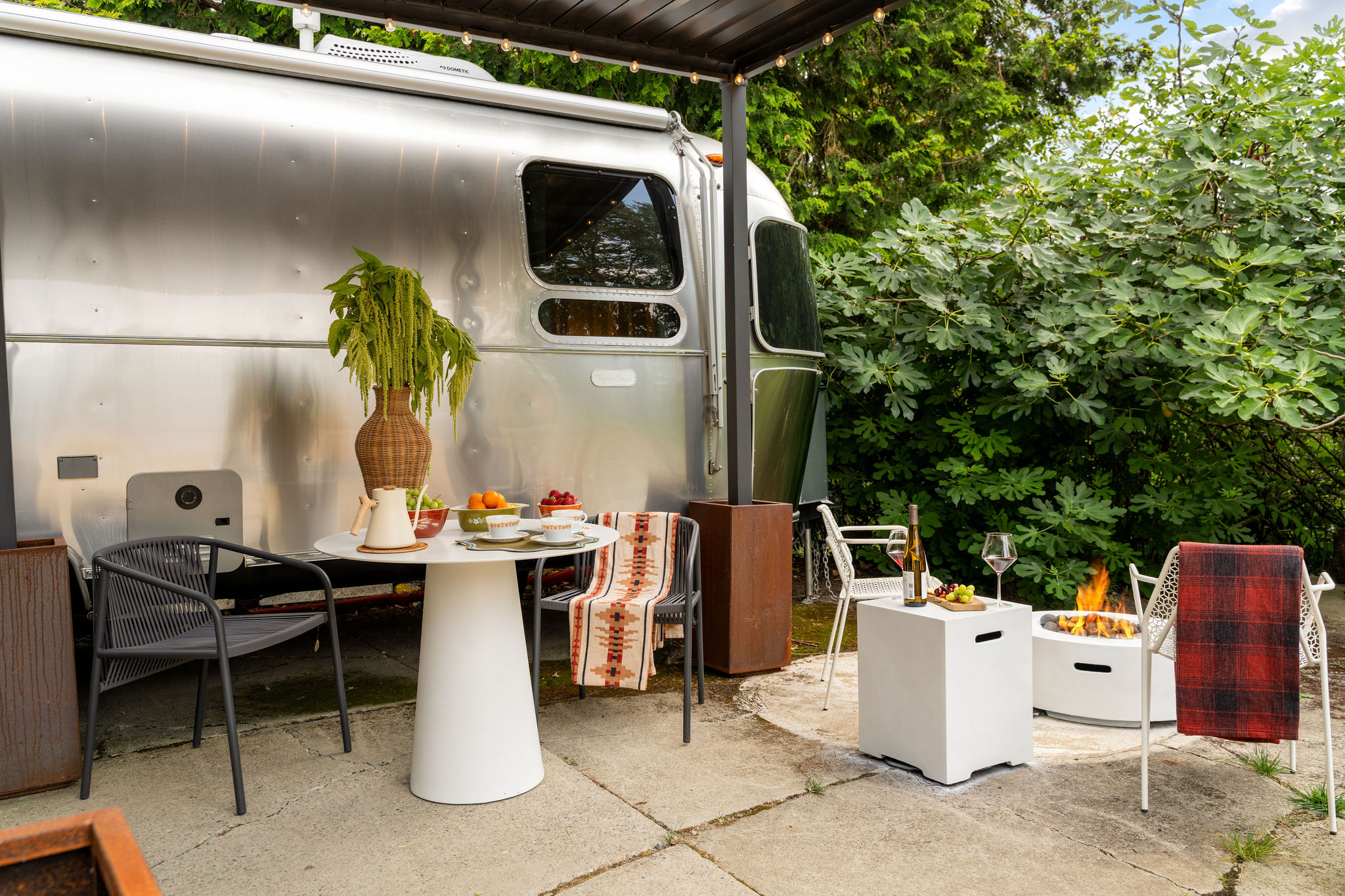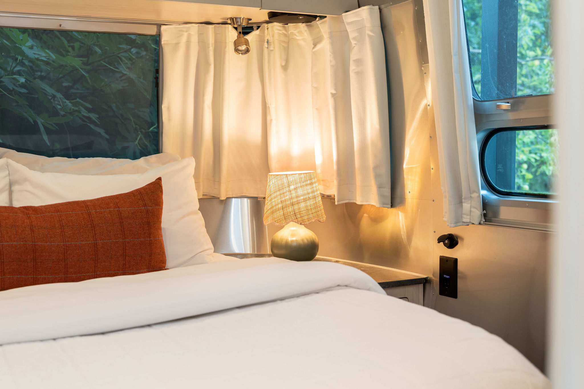 Experience glamping in luxury and comfort in the Airstream while accessing downtown city lifestyle. A complete kitchen curated with vintage Pyrex and Catherine Holm pots. Climate control heating and A/C. High-speed wifi with 2 Roku TVs and a dining table that can be used as a desk. RV shower with Aesop body soap, shampoo, and conditioner. Luxurious waffle towels and waffle bath robes included. Separate bathroom with incinerator toilet for ultimate convenience.