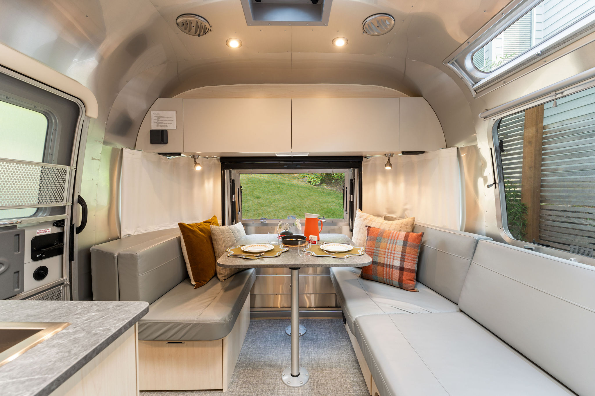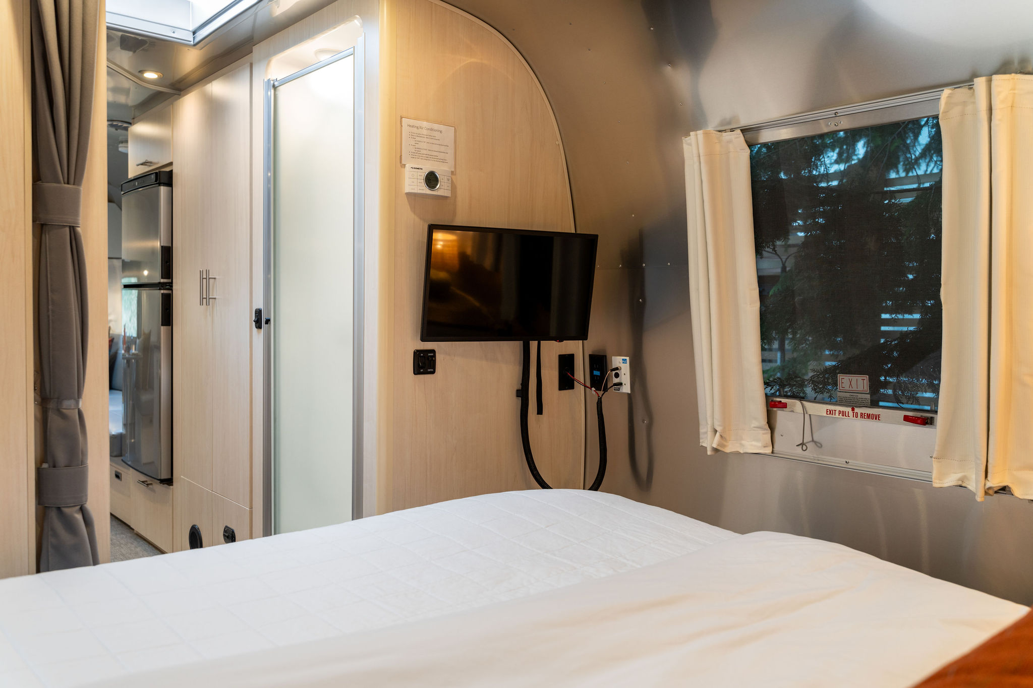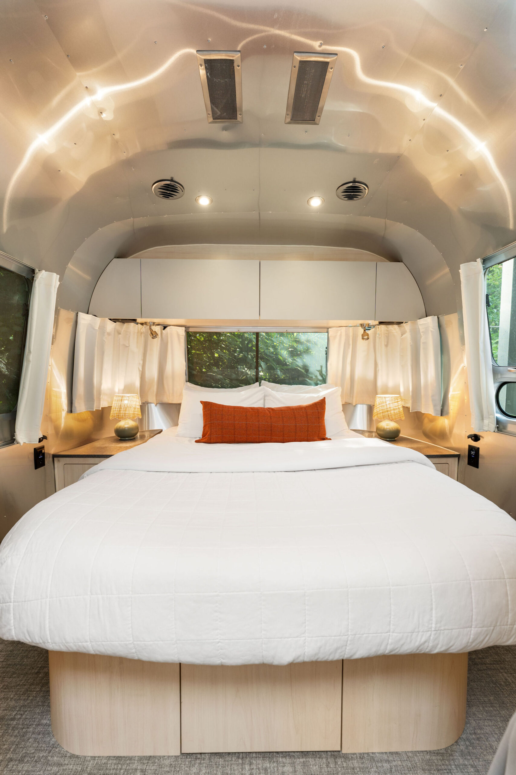 Experience glamping in luxury and comfort in the Airstream while accessing downtown city lifestyle. A complete kitchen curated with vintage Pyrex and Catherine Holm pots. Climate control heating and A/C. High-speed wifi with 2 Roku TVs and a dining table that can be used as a desk. RV shower with Aesop body soap, shampoo, and conditioner. Luxurious waffle towels and waffle bath robes included. Separate bathroom with incinerator toilet for ultimate convenience.
