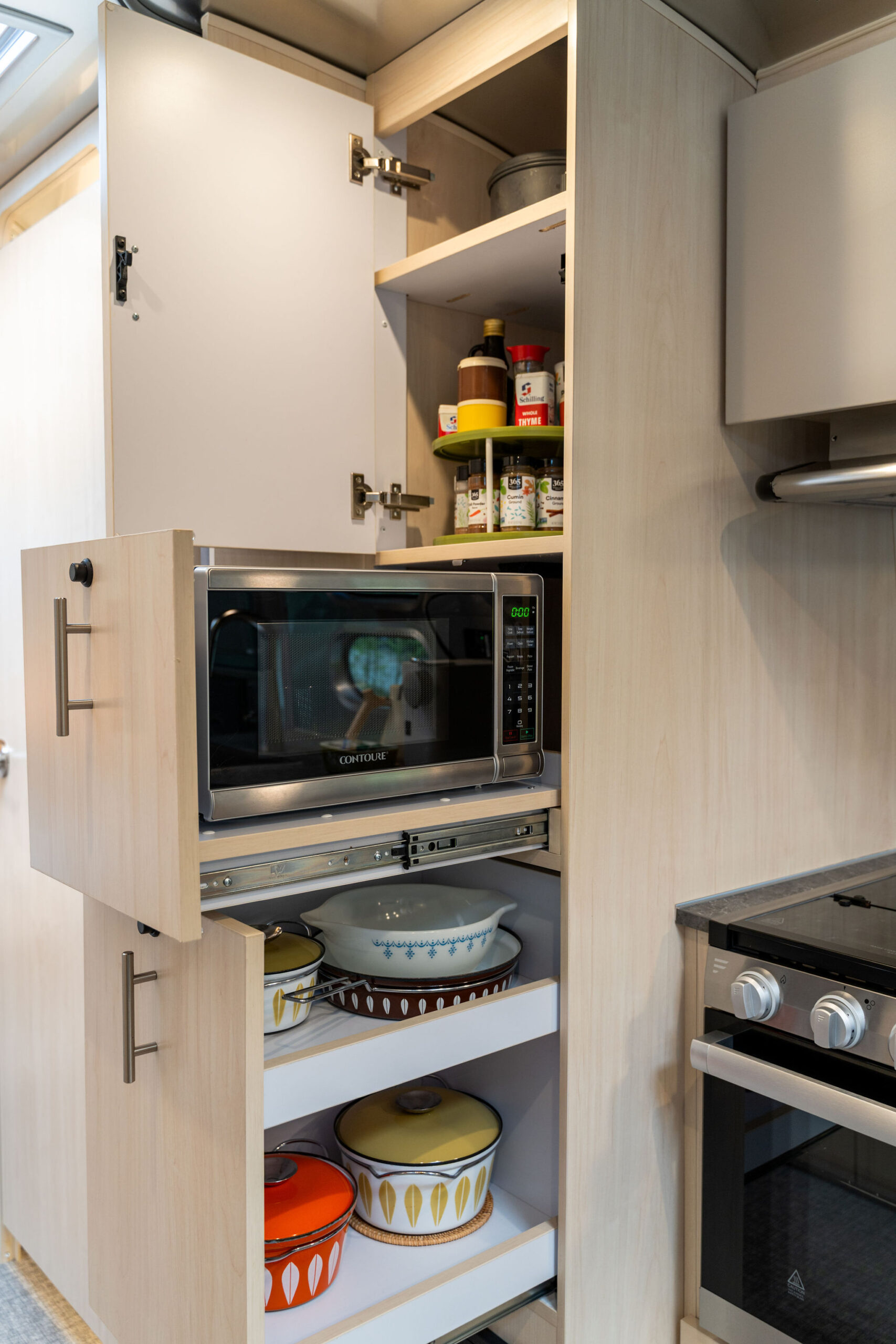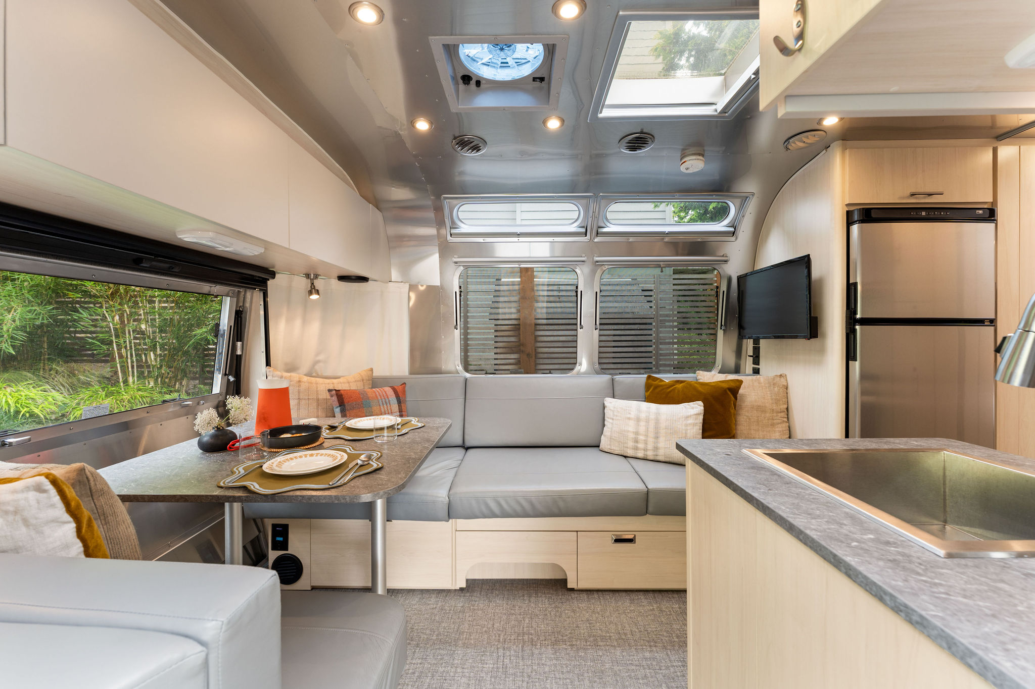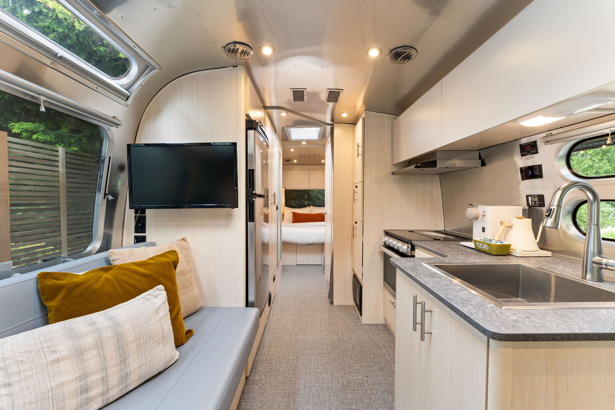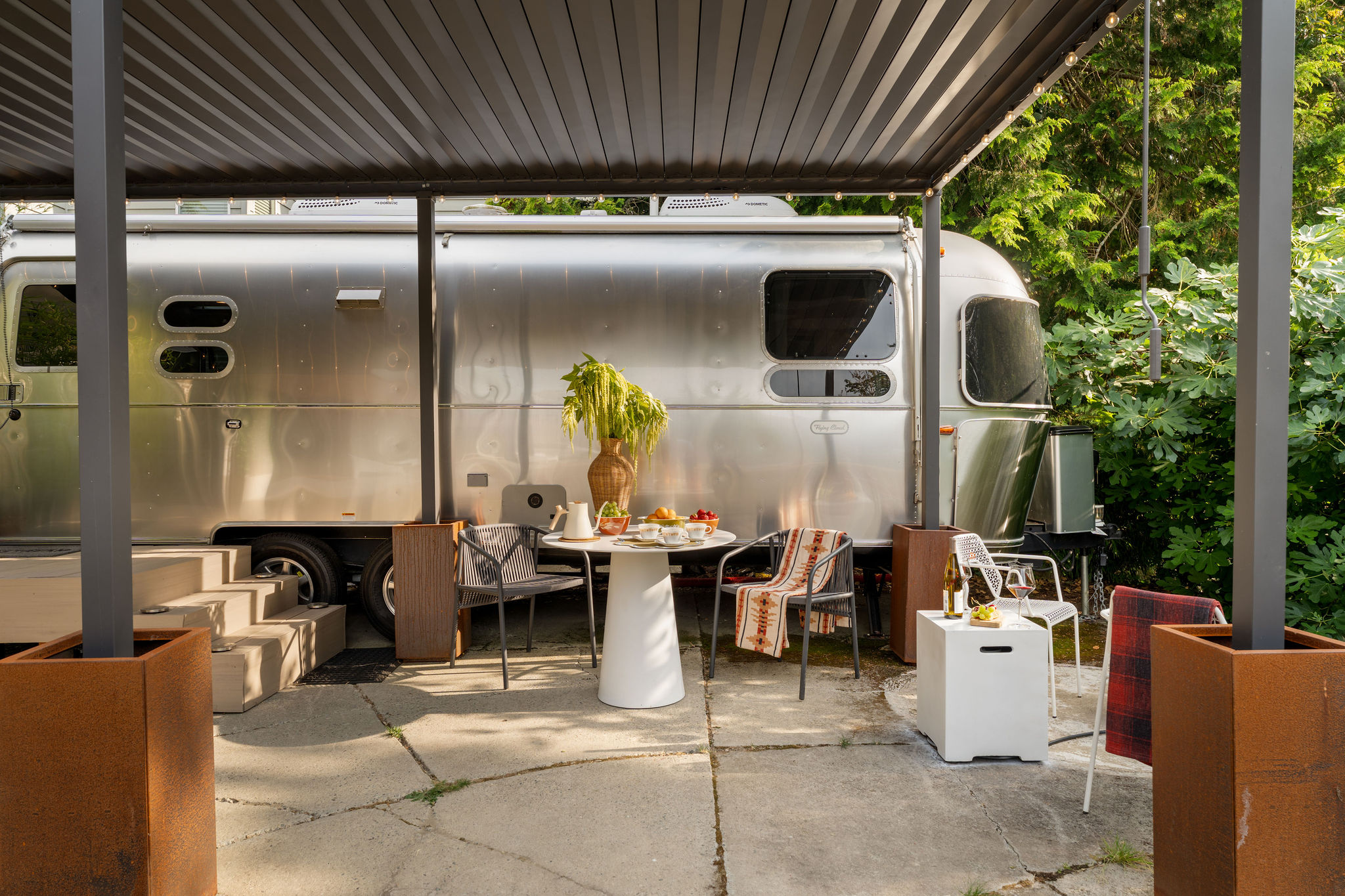 Experience glamping in luxury and comfort in the Airstream while accessing downtown city lifestyle. A complete kitchen curated with vintage Pyrex and Catherine Holm pots. Climate control heating and A/C. High-speed wifi with 2 Roku TVs and a dining table that can be used as a desk. RV shower with Aesop body soap, shampoo, and conditioner. Luxurious waffle towels and waffle bath robes included. Separate bathroom with incinerator toilet for ultimate convenience.